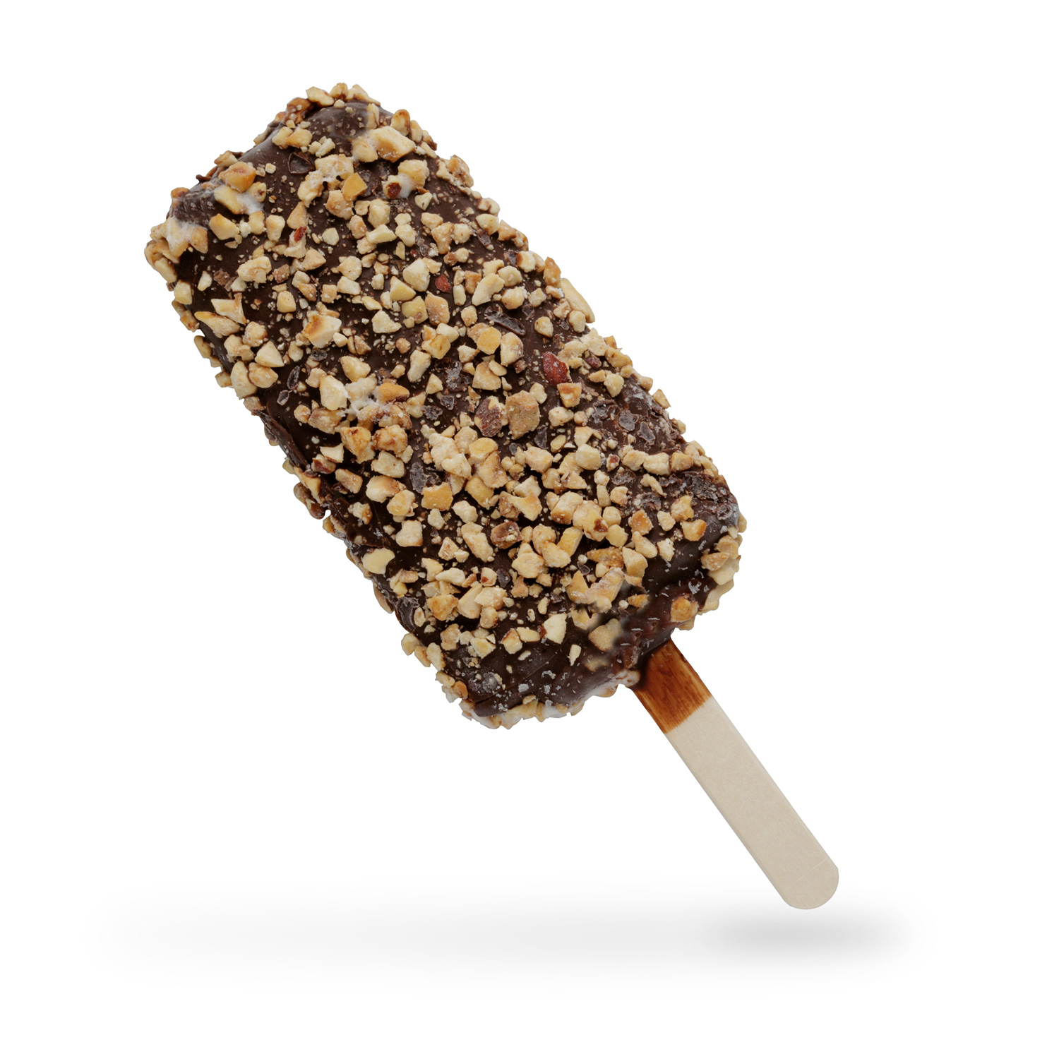Gelato al gusto vaniglia ripieno all’amarena con copertura di cioccolato e nocciole.