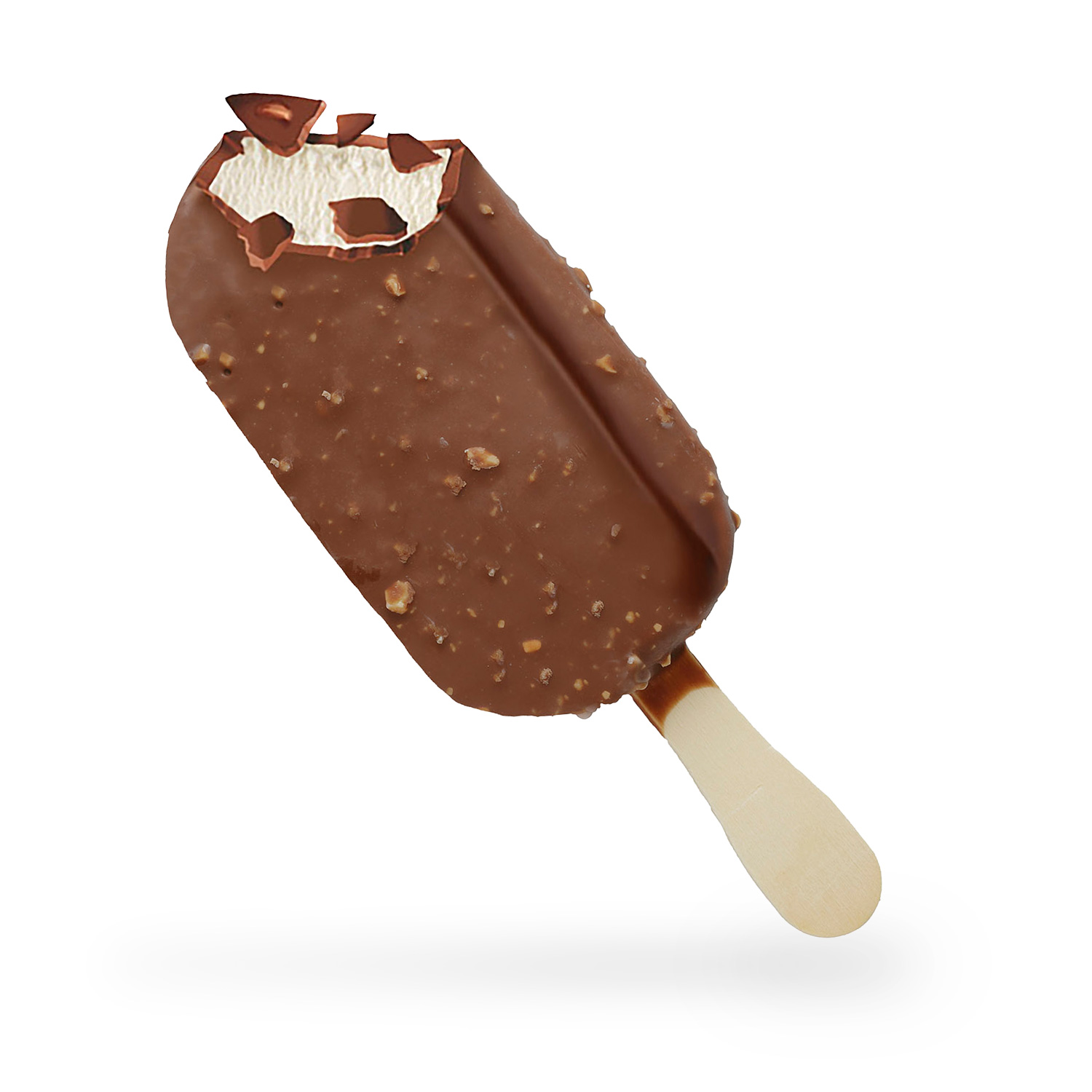 latte scremato reidratato, copertura al cioccolato al latte (25%)( zucchero, olio di cocco raffinato, burro di cacao, latte intero in polvere, pasta di cacao, burro anidro, emulsionante: lecitina di soia, aromi), zucchero, olio di cocco raffinato, sciroppo di glucosio, granella di mandorle (5%), variegato alla nocciola e al cacao (3%)( sciroppo di glucosio, acqua, nocciole (4%), cacao magro in polvere (3%), latte scremato in polvere, amido modificato, aromi, stabilizzante: E406), burro, proteine del latte, colorante: annatto, emulsionante: E471, stabilizzante: E410-E412-E407, aromi. (100 %)